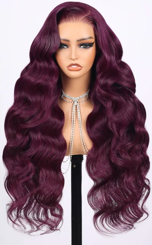 13x4 Lace Frontal Plum Body Wave Glueless Wig with Natural Hairline
